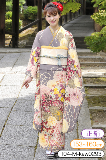 振袖レンタル 振袖Mサイズ 菊の丸 薄グレー サイズ:M 153~160cm 表地:正絹
