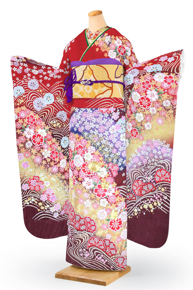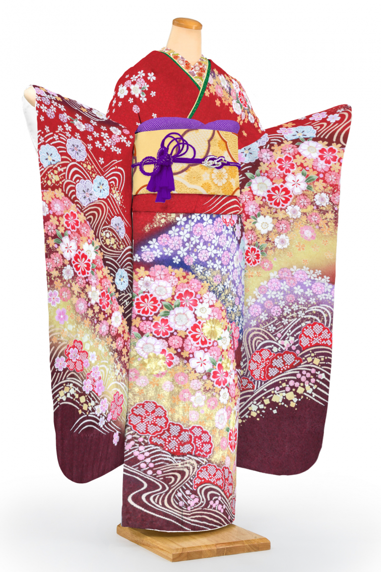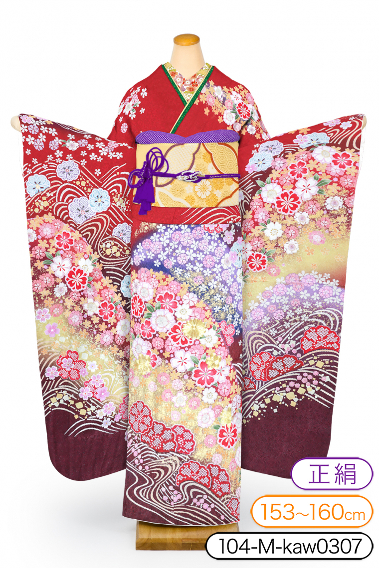 振袖レンタル 振袖Mサイズ 花園 朱赤 サイズ:M 153~160cm 表地:正絹