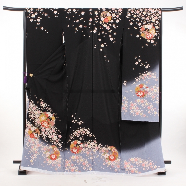 振袖レンタル 振袖Sサイズ 花輪に桜 黒 サイズ:S 148~155cm 表地:正絹