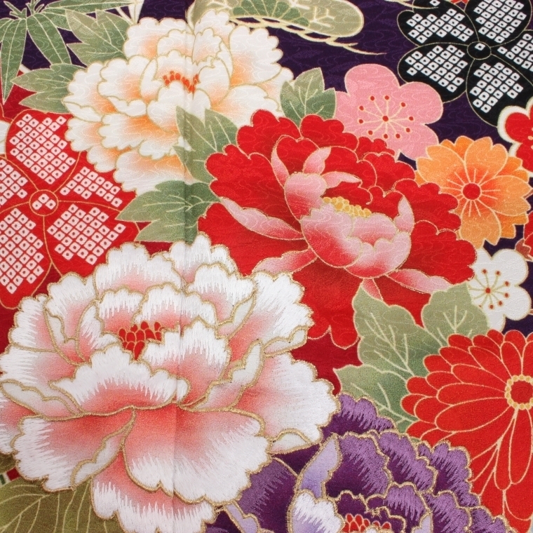 振袖レンタル 振袖Mサイズ 雪輪に富貴花 紫 サイズ:M 153~160cm 表地:正絹