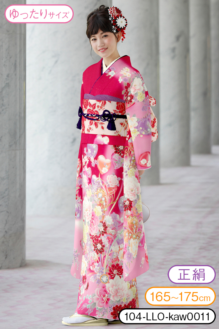 振袖レンタル 振袖LLOサイズ ジュエリーハート ピンク サイズ:LL-O 165~175cm ゆったりサイズ 表地:正絹
