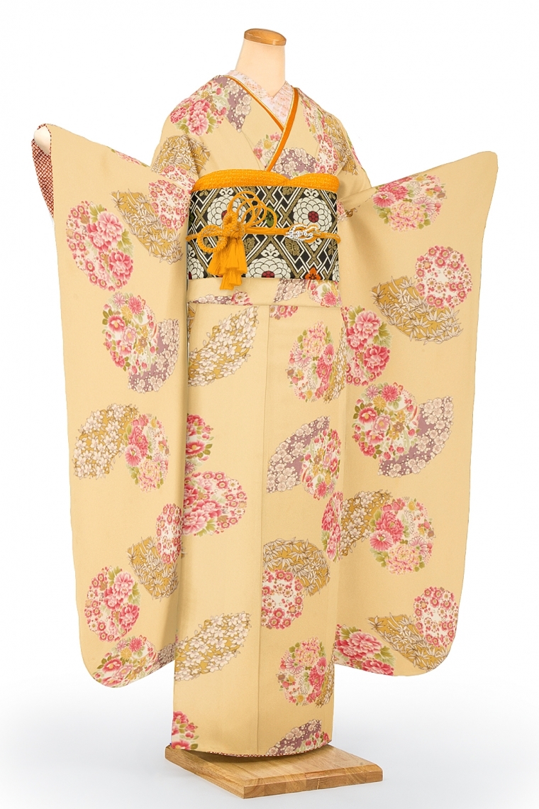 振袖レンタル 振袖Mサイズ ブランド:きもの道楽 花の丸 クリーム サイズ:M 153~160cm 表地:合繊