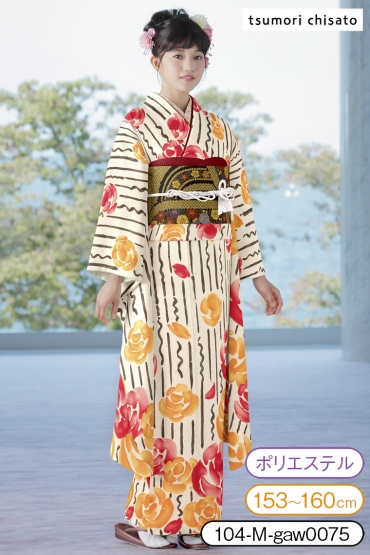振袖レンタル 振袖Mサイズ ブランド:tsumori chisato よろけ縞薔薇 クリームオレンジ サイズ:M 153~160cm 表地:合繊