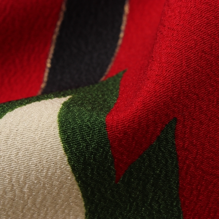 振袖レンタル 振袖Mサイズ ブランド:岡重 立枠に菊菱 赤/黒 サイズ:M 153~160cm 表地:合繊