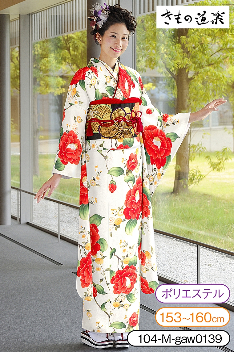振袖レンタル 振袖Mサイズ ブランド:きもの道楽 椿姫 クリーム サイズ:M 153~160cm 表地:合繊