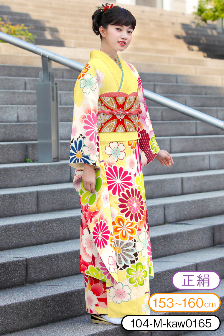 振袖レンタル 振袖Mサイズ 丸菊華文 黄色 サイズ:M 153~160cm 表地:正絹