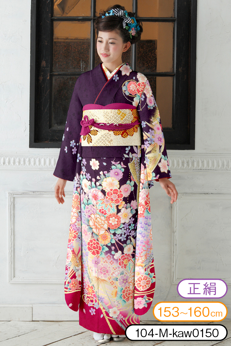 振袖レンタル 振袖Mサイズ 流水雪輪下り藤 青紫 サイズ:M 153~160cm 表地:正絹
