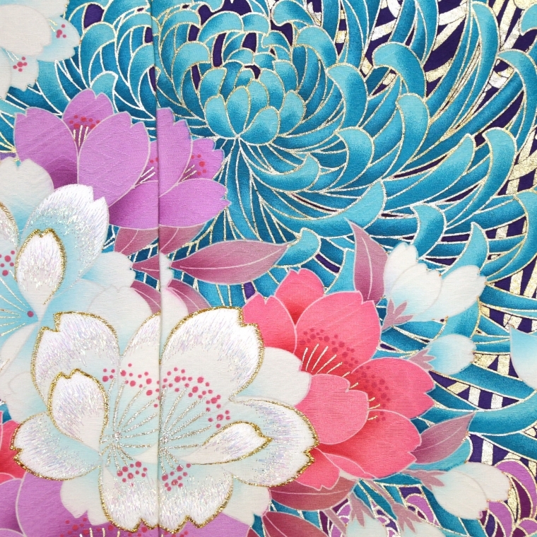 振袖レンタル 振袖Lサイズ ブランド:Xmiss 桜菊文 青紫 サイズ:L 158~168cm 表地:正絹