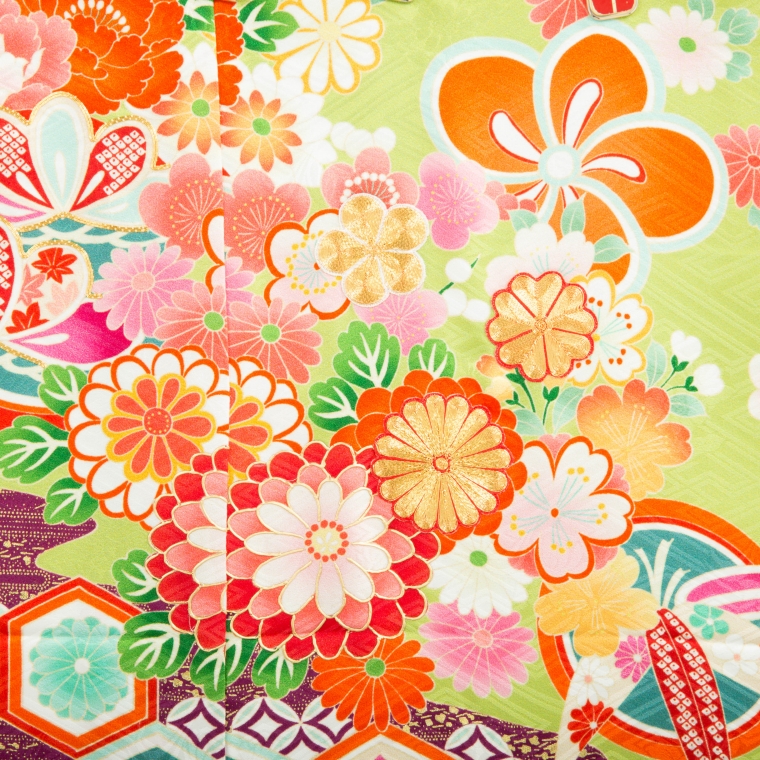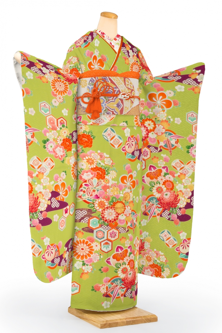 振袖レンタル 振袖Mサイズ 四季花丸紋 緑 サイズ:M 153~160cm 表地:正絹