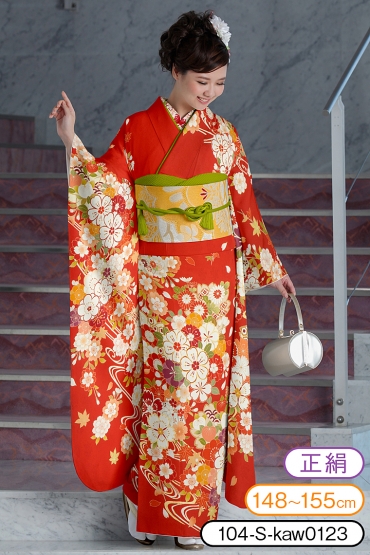 振袖レンタル 振袖Sサイズ 流水に四季花文 赤 サイズ:S 148~155cm 表地:正絹