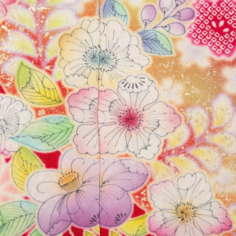 振袖レンタル 振袖Sサイズ 辻が花風 束熨斗に華 赤 サイズ:S 148~155cm 表地:正絹