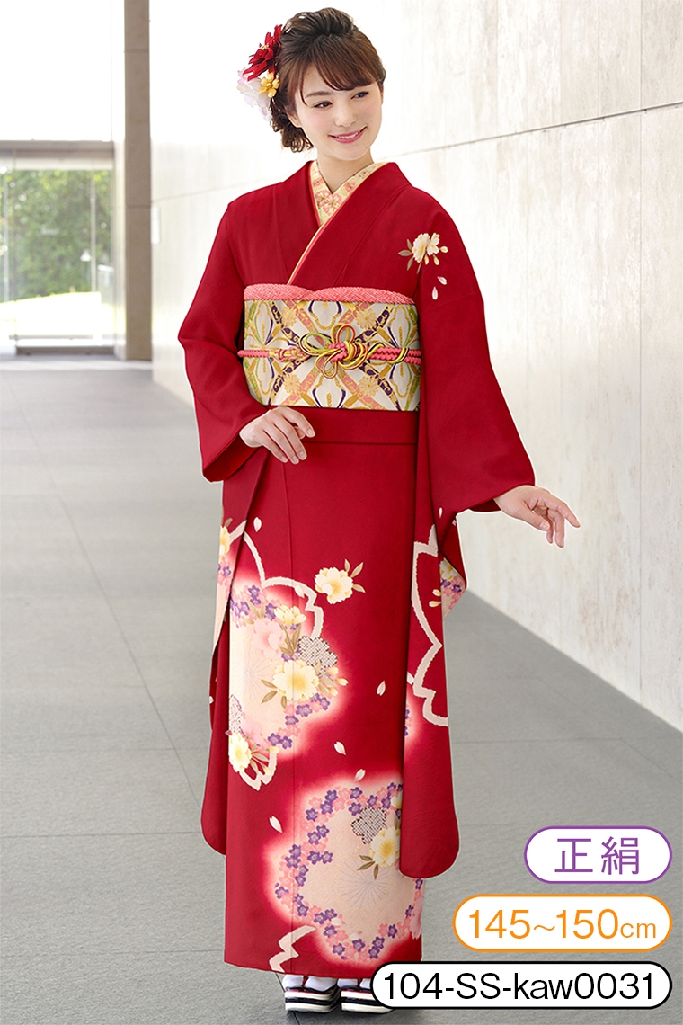 振袖レンタル 振袖SSサイズ 桜重ね 赤 サイズ:SS 145~150cm 表地:正絹