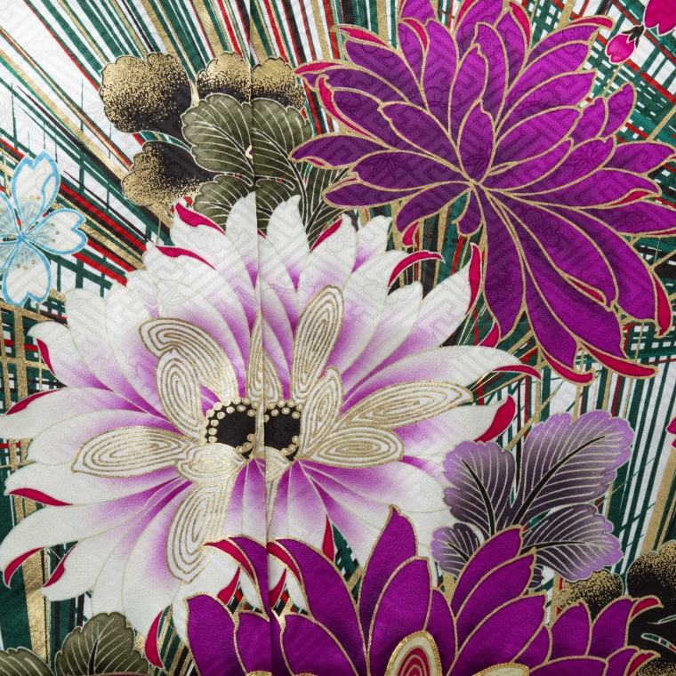 振袖レンタル 振袖Lサイズ ブランド:SPIRALGIRL 大王松と大菊 白/紫 サイズ:L 158~168cm 表地:正絹