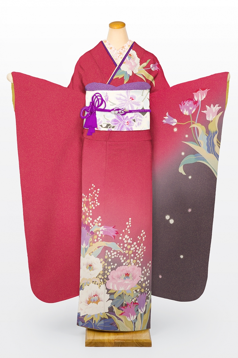 振袖レンタル 振袖Lサイズ 京友禅:二代目 清次朗 お花畑 赤紫 サイズ:L 158~168cm 表地:正絹