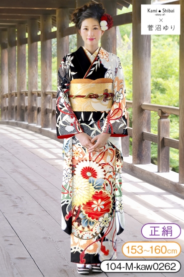 振袖レンタル 振袖Mサイズ ブランド:Kami Shibai×菅沼ゆり 大菊 黒 サイズ:M 153~160cm 表地:正絹