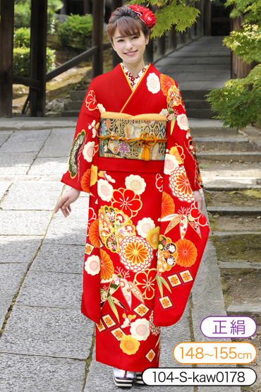 振袖レンタル 振袖Sサイズ 大輪菊梅紋に花菱 赤 サイズ:S 148~155cm 表地:正絹