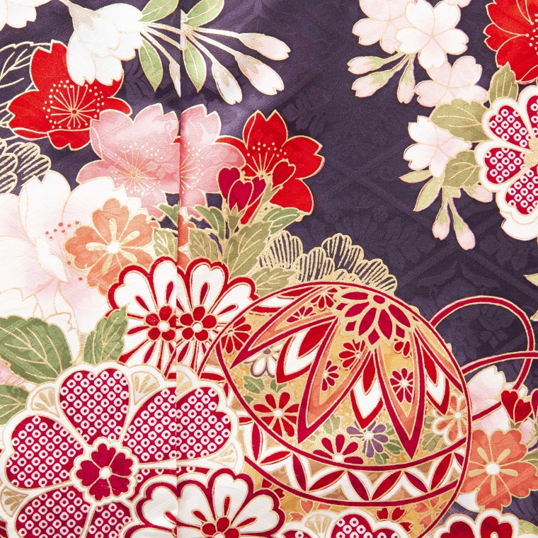 振袖レンタル 振袖Lサイズ 花手毬 紫/赤紫 サイズ:L 158~168cm 表地:正絹