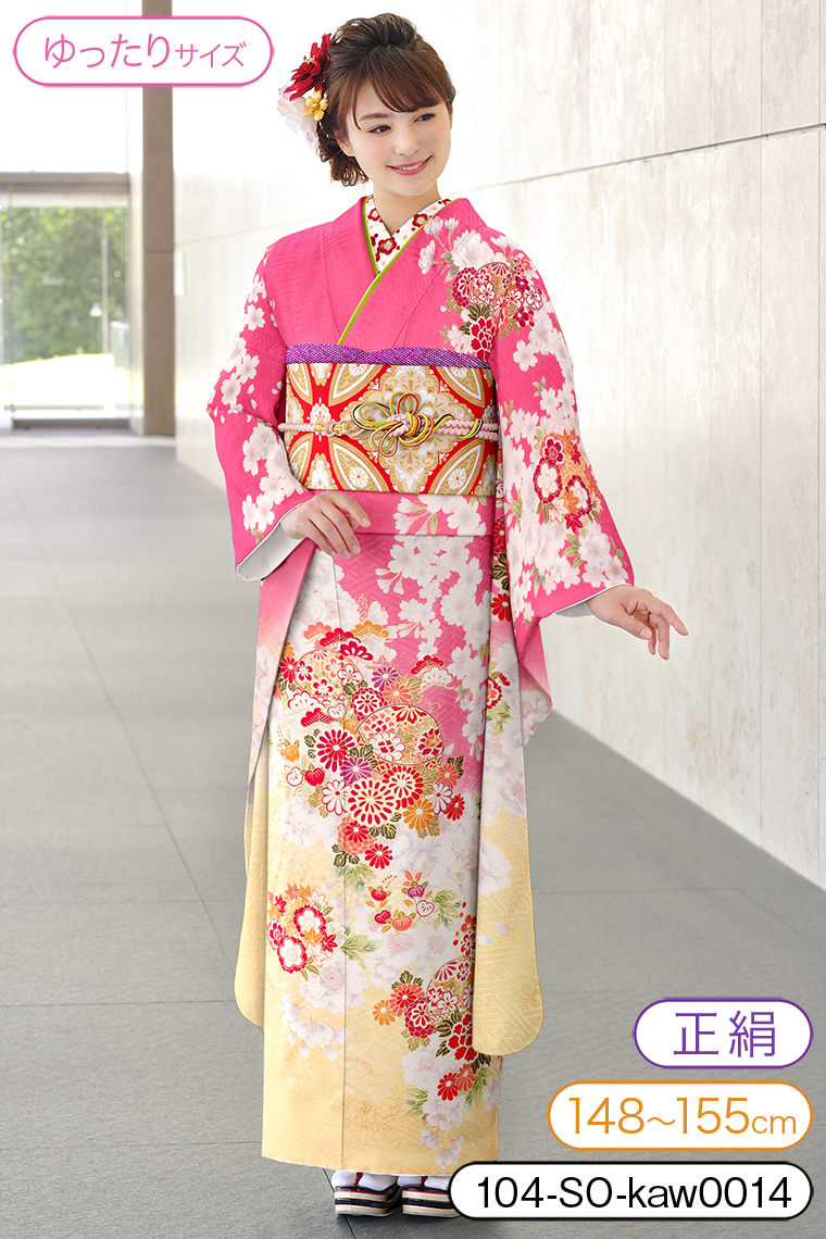 振袖レンタル 振袖SOサイズ 愛華 ピンク/クリーム サイズ:S-O 148~155cm ゆったりサイズ 表地:正絹