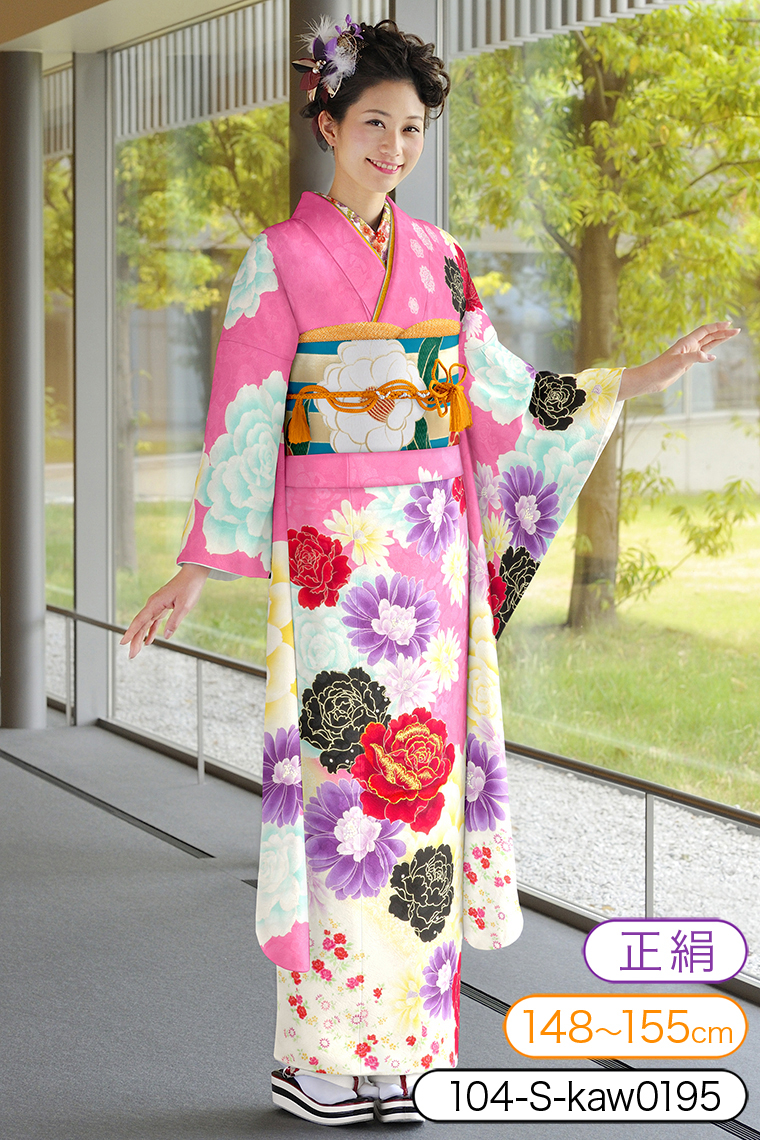 振袖レンタル 振袖Sサイズ フラワーローズ ピンク サイズ:S 148~155cm 表地:正絹