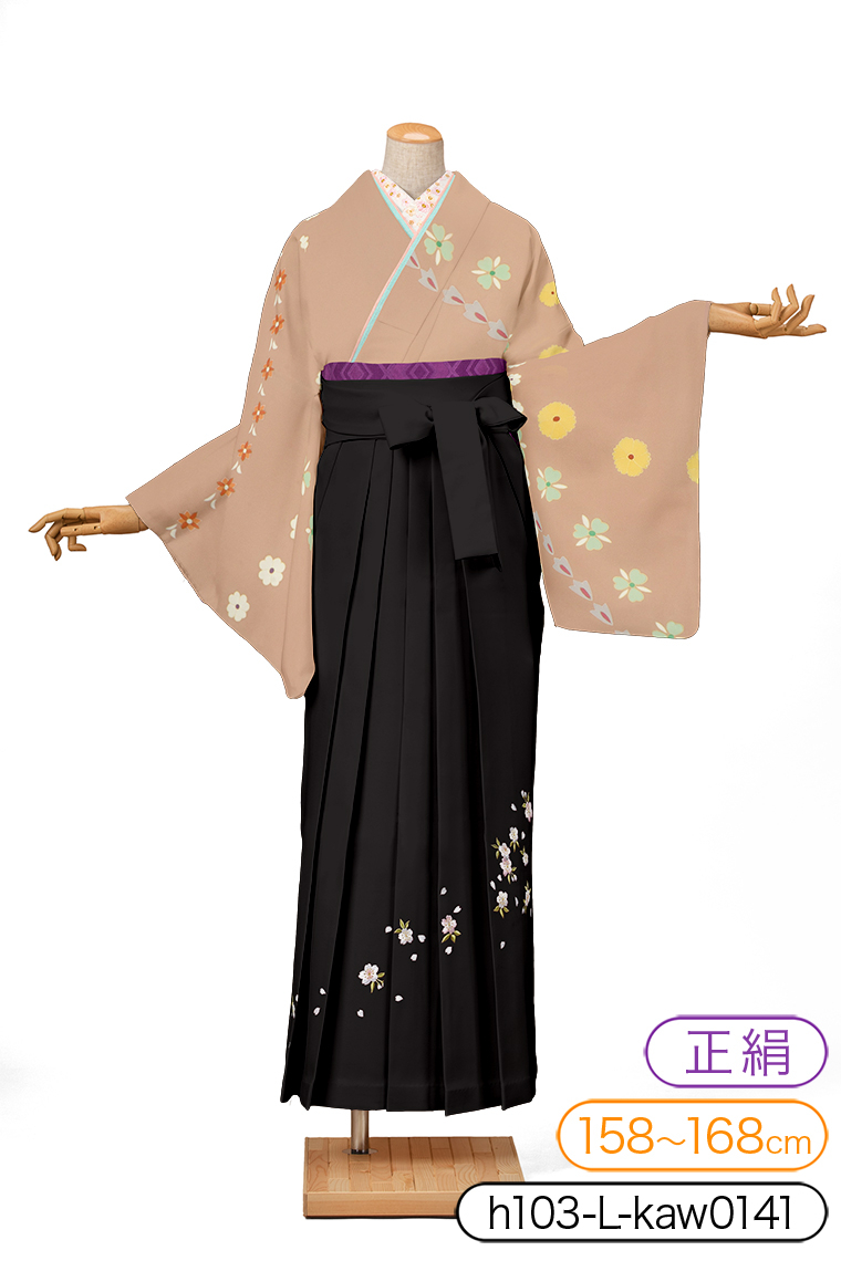 卒業式袴レンタル 訪問着Lサイズ+袴セット 京友禅:大華紋 サーモンピンク サイズ:L 158~168cm 表地:正絹