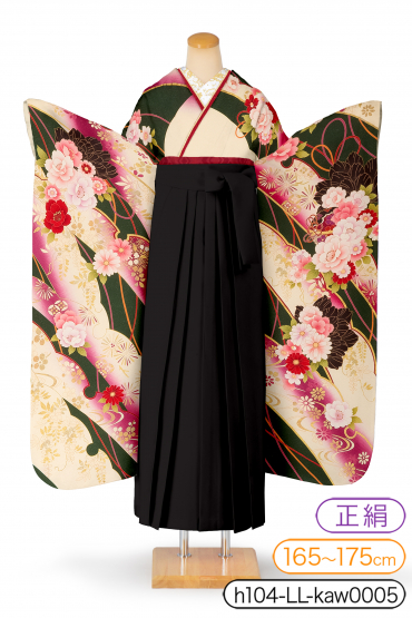 卒業式レンタル 振袖LLサイズ+袴セット 牡丹と鞠 白緑 サイズ:LL 165~175cm 表地:正絹