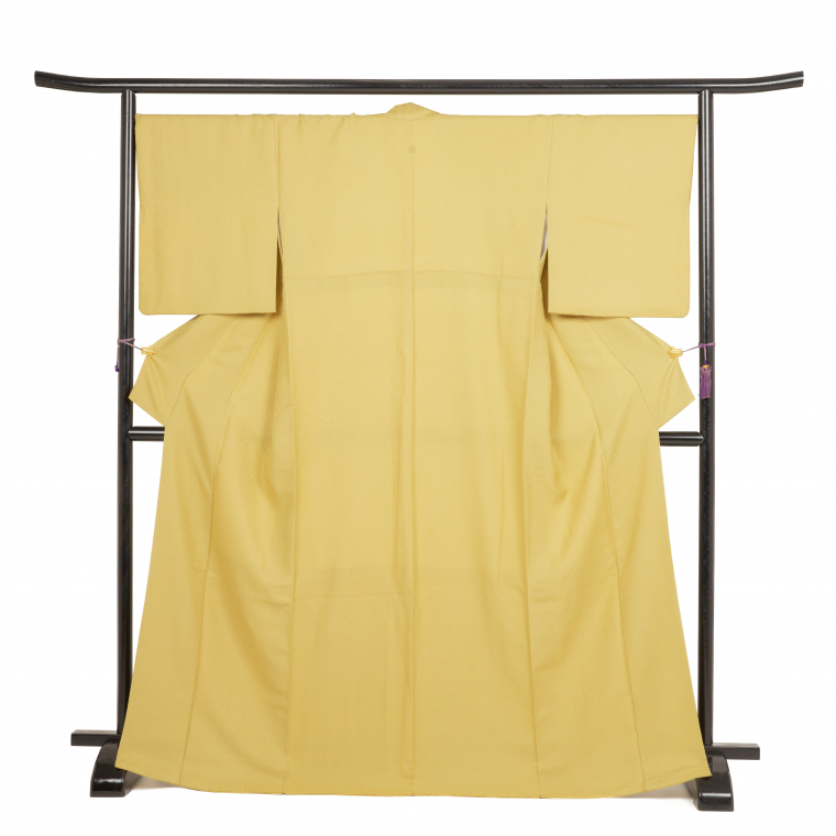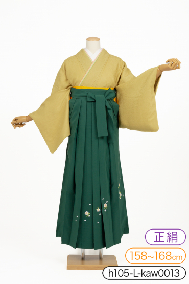 卒業式袴レンタル 色無地Lサイズ+袴セット 縫一つ紋:桔梗 薄辛子色 サイズ:L 158~168cm 表地:正絹