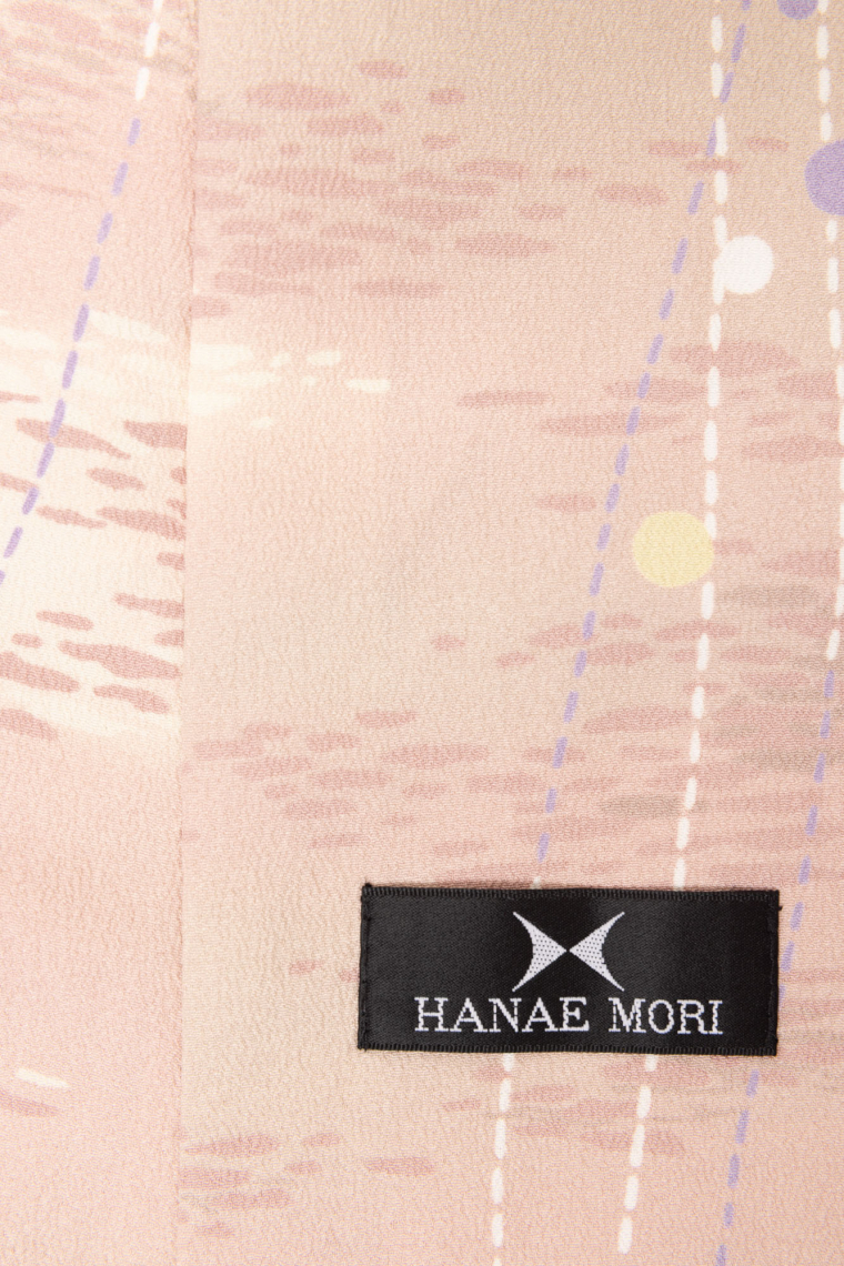 卒業式袴レンタル 小紋Lサイズ+袴セット ブランド:HANAE MORI 霞に曲線 赭色 サイズ:L 158~168cm 表地:合繊