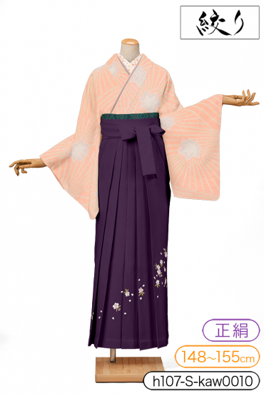 卒業式袴レンタル 小紋Sサイズ+袴セット 絞り:楓 曙色 サイズ:S 148~155cm 表地:正絹