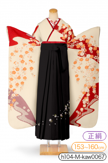 卒業式レンタル 振袖Mサイズ+袴セット 雲取り桜 白 サイズ:M 153~160cm 表地:正絹