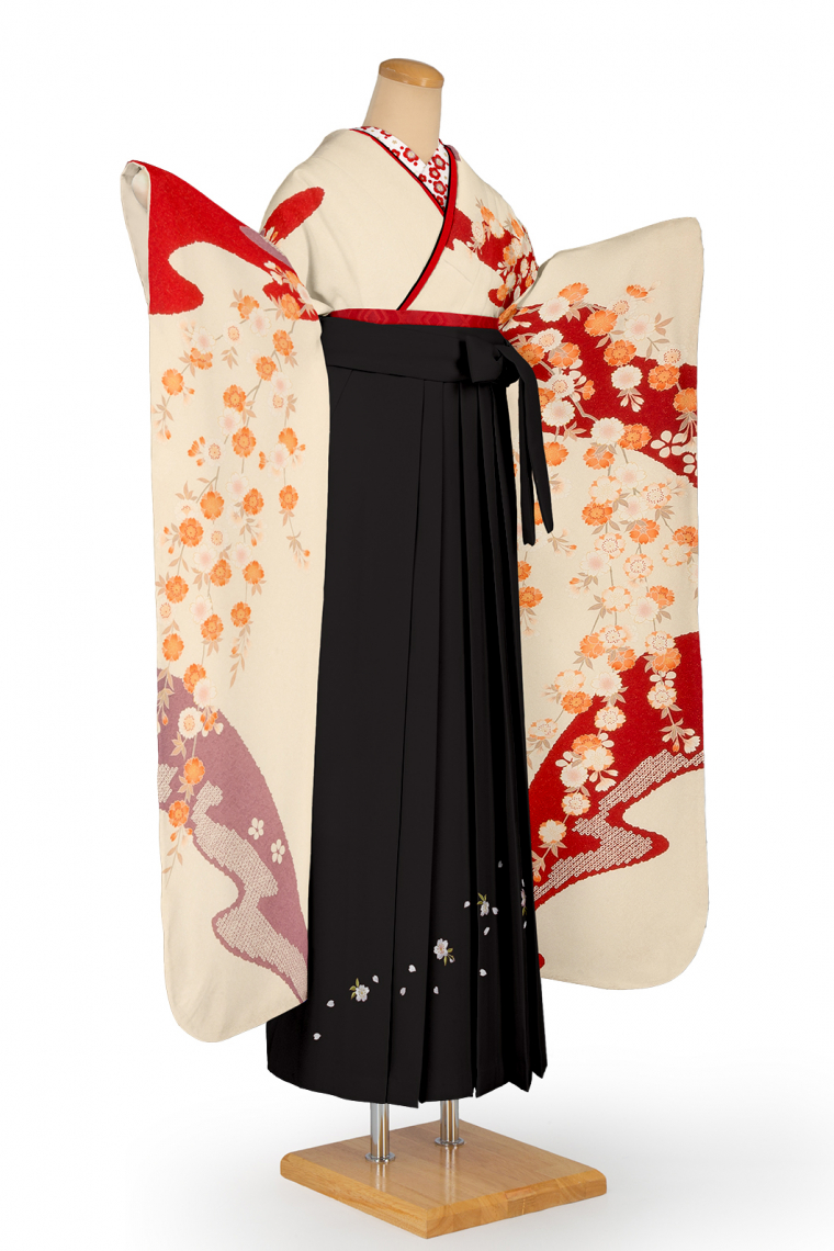 袴:122-bks 半巾帯:941-A006 重ね衿:932-R-A001 半衿:339-2148-6