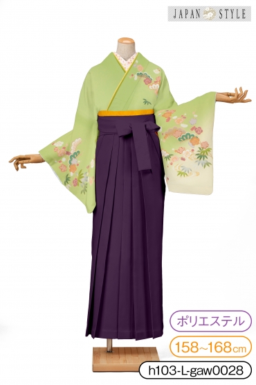 卒業式袴レンタル 訪問着Lサイズ+袴セット ブランド:JAPANSTYLE 流水に松竹梅 黄緑 サイズ:L 158~168cm 表地:合繊