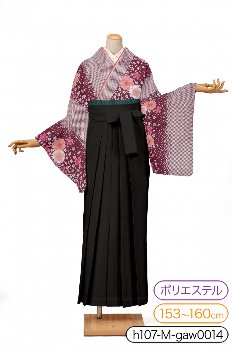 卒業式袴レンタル 小紋Mサイズ+袴セット 鹿の子に桜 濃暗紅色 サイズ:M 153~160cm 表地:合繊