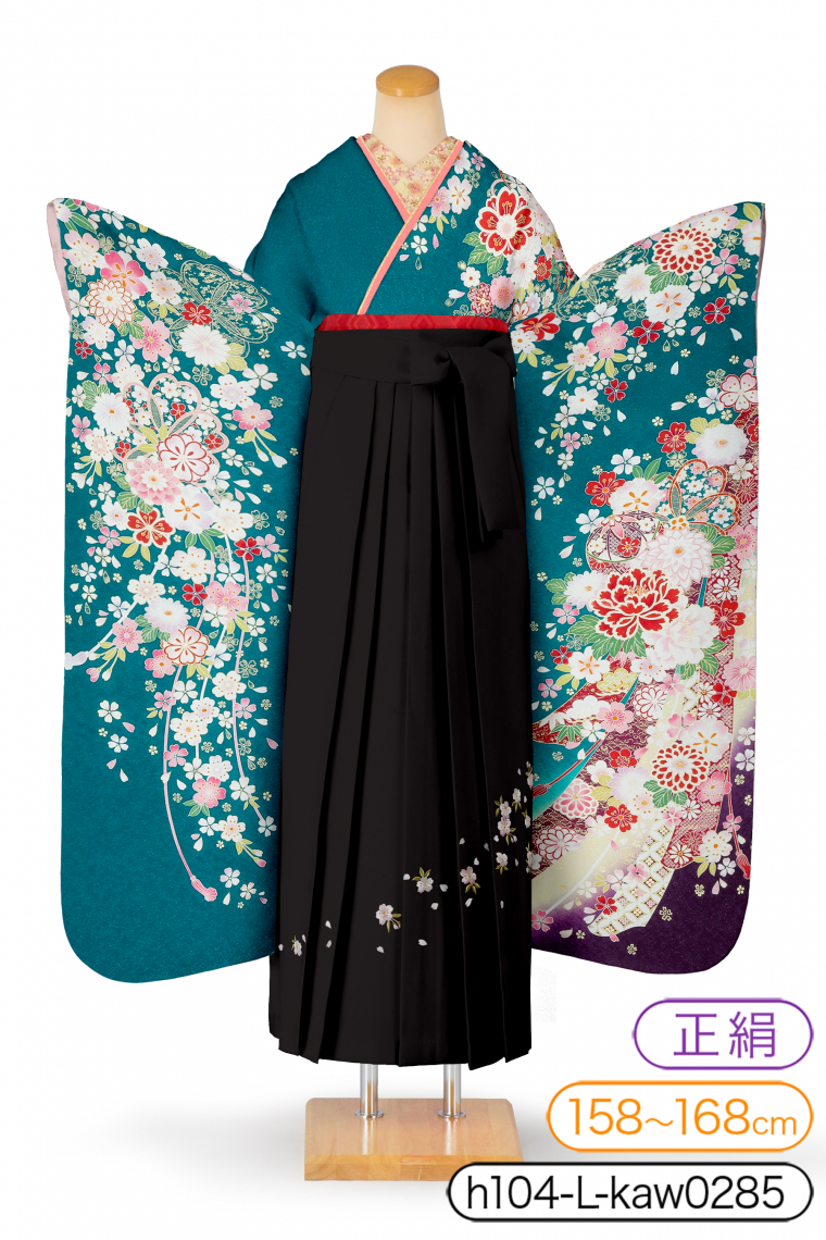 卒業式レンタル 振袖Lサイズ+袴セット 吉祥四季花 青緑 サイズ:L 158~168cm 表地:正絹