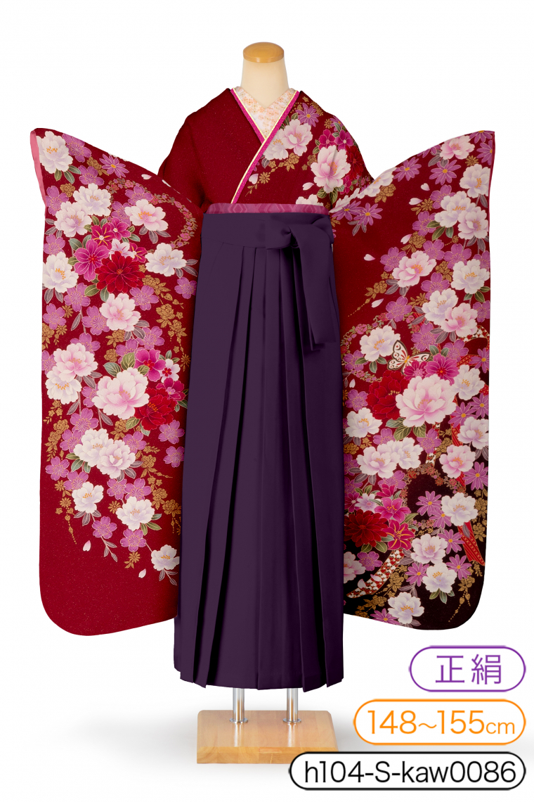 卒業式レンタル 振袖Sサイズ+袴セット 花園に蝶 赤 サイズ:S 148~155cm 表地:正絹