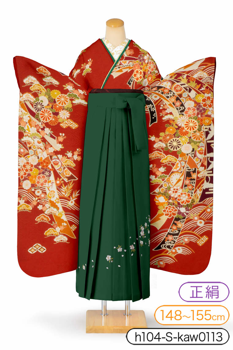 卒業式レンタル 振袖Sサイズ+袴セット 束ね熨斗花の丸 赤 サイズ:S 148~155cm 表地:正絹