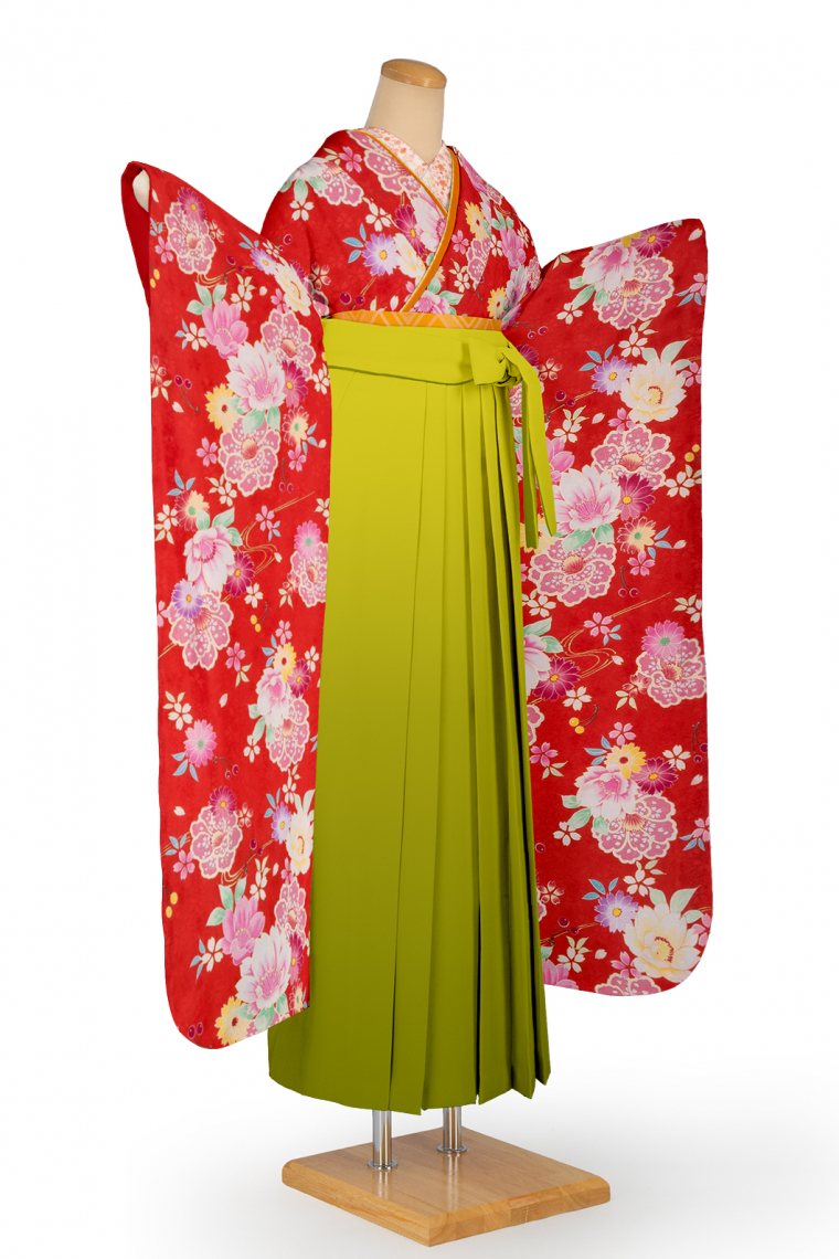 卒業式レンタル 振袖Mサイズ+袴セット 花さくらんぼ 赤/ピンク サイズ:M 153~160cm 表地:合繊
