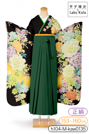 卒業式レンタル 振袖Mサイズ+袴セット Risa Hiroko×Lako Kula 花鳥図 黒 サイズ:M 153~160cm 表地:正絹