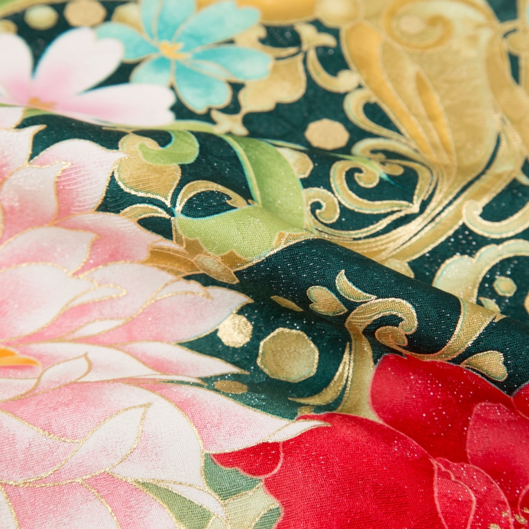 卒業式レンタル 振袖SOサイズ+袴セット 大牡丹 深緑 サイズ:S-O 148~155cm ゆったりサイズ 表地:正絹
