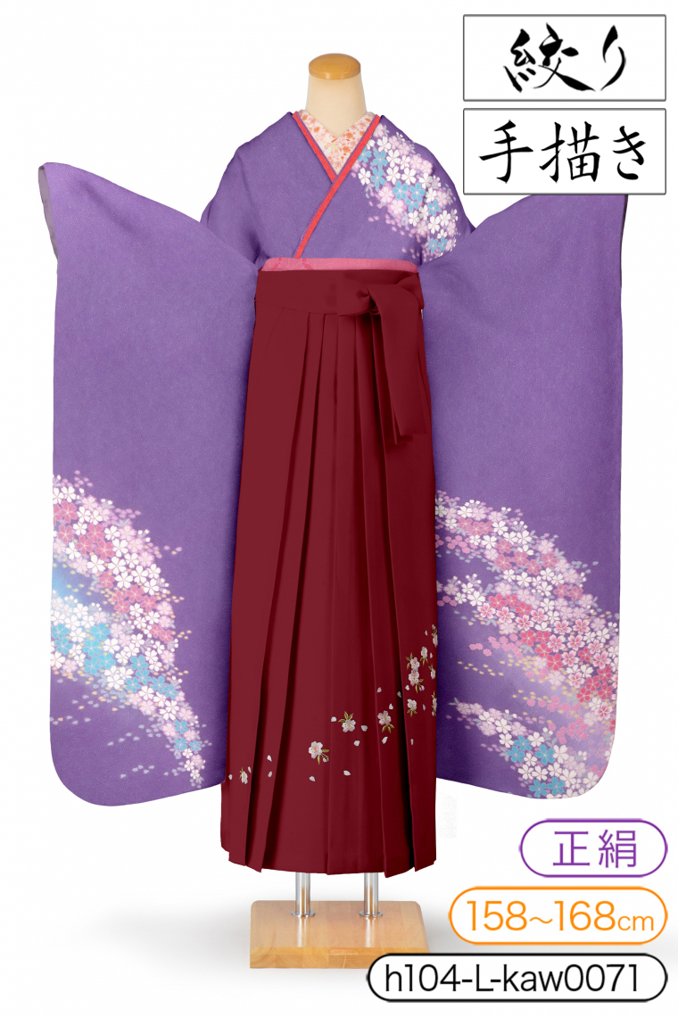 卒業式レンタル 振袖Lサイズ+袴セット 絞り おぼろ染 桜 紫 サイズ:L 158~168cm 表地:正絹