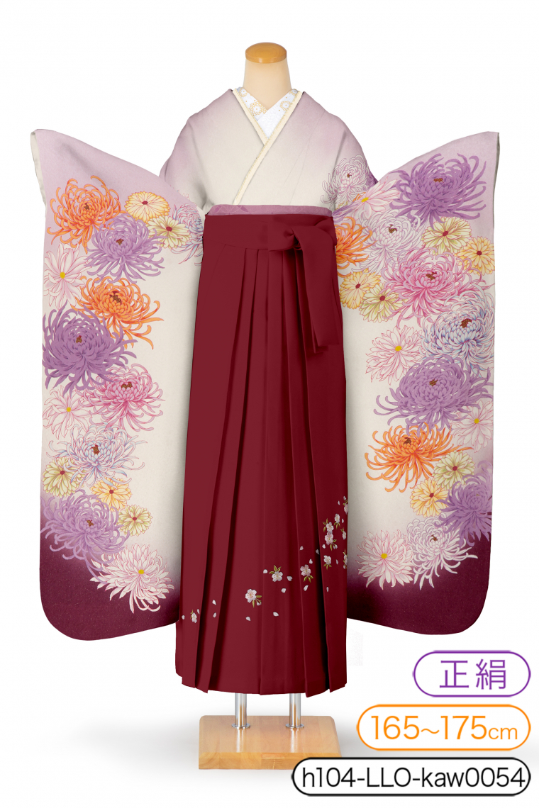 卒業式レンタル 振袖LLOサイズ+袴セット 大輪菊尽くし 白/赤紫 サイズ:LL-O 165~175cm ゆったりサイズ 表地:正絹