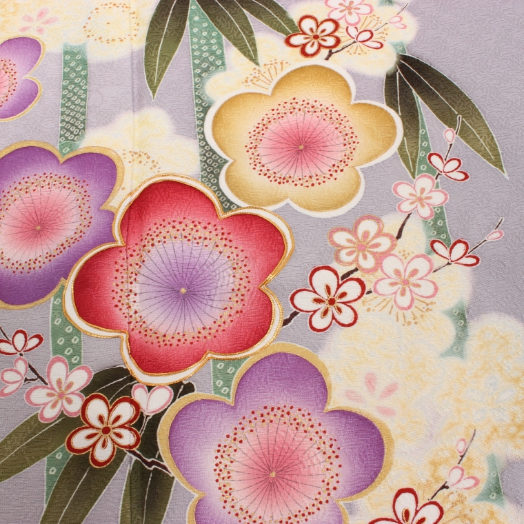 卒業式レンタル 振袖Lサイズ+袴セット 梅竹文様 クリーム/グレー サイズ:L 158~168cm 表地:正絹