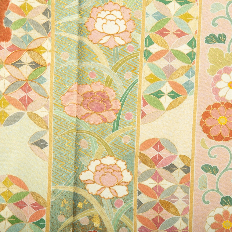 卒業式袴レンタル 訪問着Lサイズ+袴セット 京友禅:二代目松井青々 慶長桃山 クリーム サイズ:L 158~168cm 表地:正絹