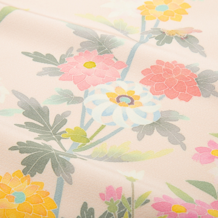 卒業式袴レンタル 訪問着Lサイズ+袴セット 加賀友禅:高野富夫 菊と都忘れ クリーム/ピンク サイズ:L 158~168cm 表地:正絹