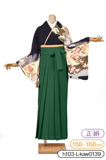卒業式袴レンタル 訪問着Lサイズ+袴セット 雲取草花文 濃紺 サイズ:L 158~168cm 表地:正絹