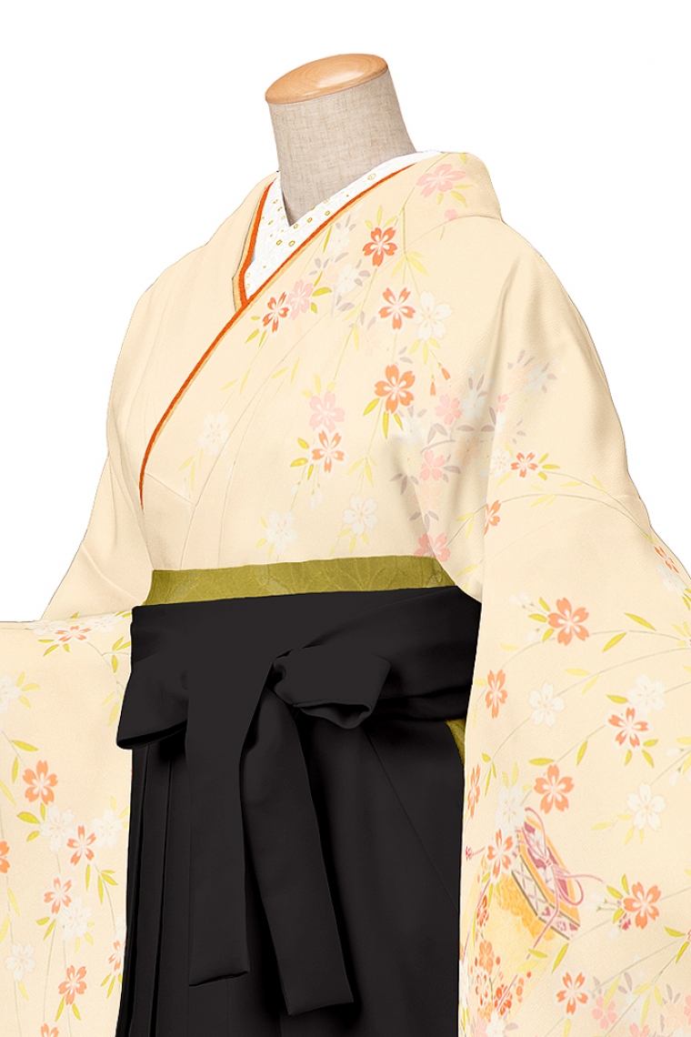 卒業式袴レンタル 訪問着Lサイズ+袴セット 雲取貝桶松桜菊 クリーム サイズ:L 158~168cm 表地:正絹