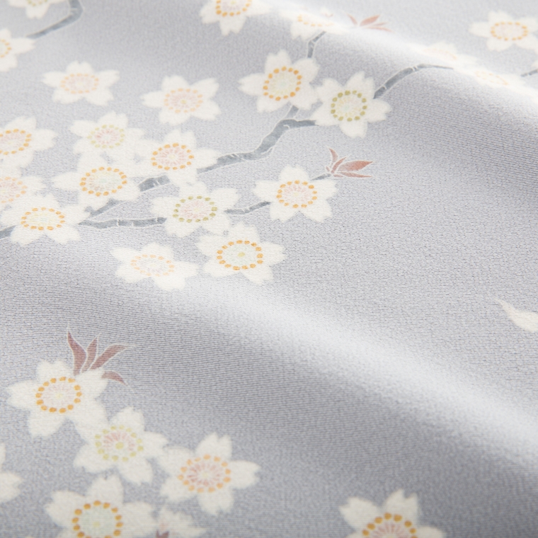 卒業式袴レンタル 訪問着Mサイズ+袴セット 加賀友禅:二代目由水十久 桜に奏す 青グレー サイズ:M 153~160cm 表地:正絹