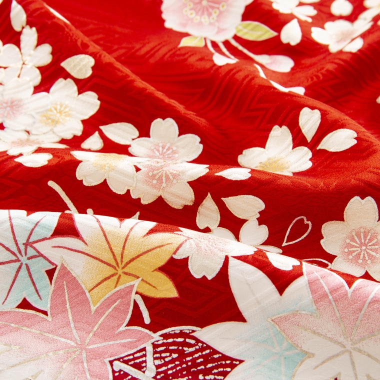 卒業式レンタル 振袖Mサイズ+袴セット 華車 赤 サイズ:M 153~160cm 表地:正絹