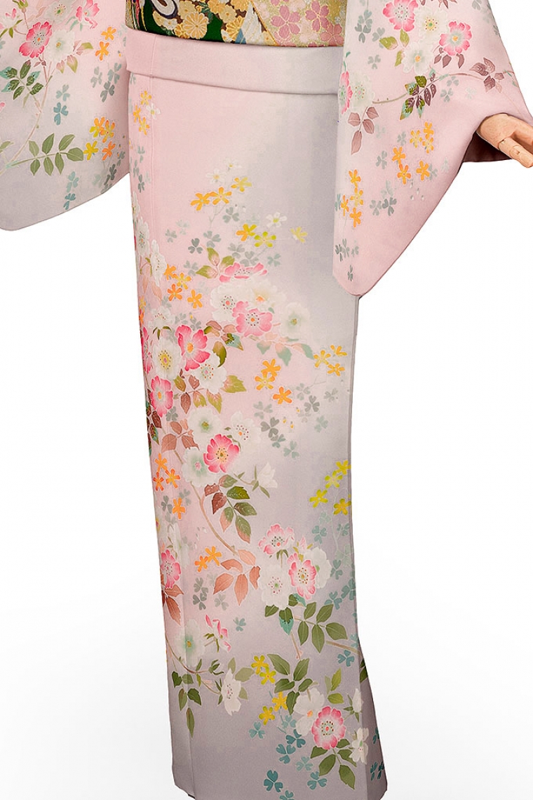 訪問着レンタル 訪問着LLOサイズ 加賀友禅:大久保謙一 ノバラの小路 ピンク サイズ:LL-O 165~175cm ゆったりサイズ 表地:正絹