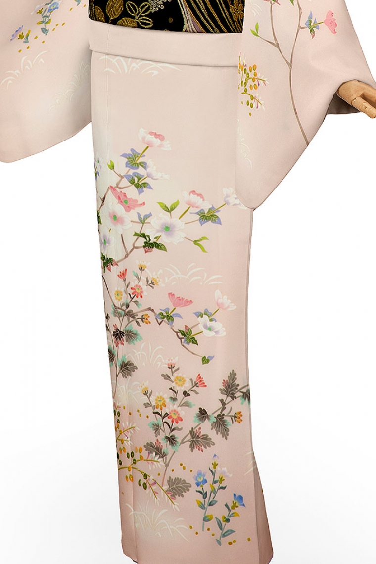 訪問着レンタル 訪問着Sサイズ 加賀友禅:濱田泰史 花水木秋草 ピンク サイズ:S 148~155cm 表地:正絹