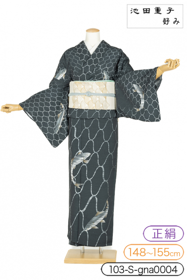 夏訪問着レンタル 夏訪問着Sサイズ ブランド:池田重子好み 鮎 鉄色/黒 サイズ:S 148~155cm 表地:合繊